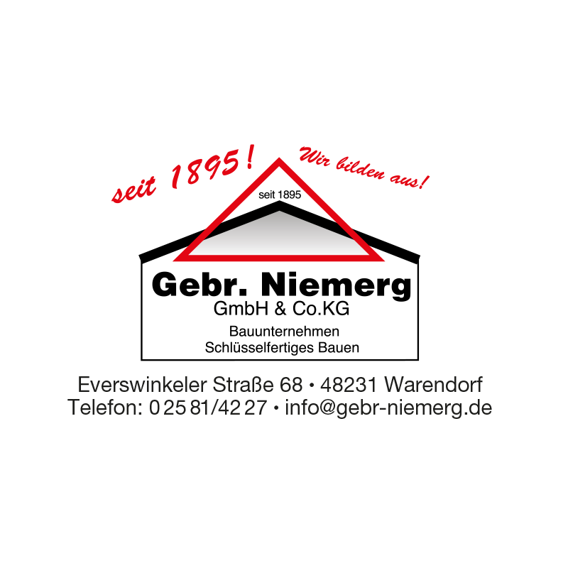 Wir sind ein fami­li­en­ge­führ­ter Meis­ter­be­trieb und bli­cken auf mehr als 120 Jah­re erfolg­rei­che Erfah­rung und zufrie­de­ne Kun­den zurück. Unser Team besteht aus­schließ­lich aus qua­li­fi­zier­ten Fach­kräf­ten. Wir garan­tie­ren Ihnen hohe Qua­li­tät und eine fach­ge­rech­te Aus­füh­rung Ihres Bau­vor­ha­bens. Sichern Sie sich durch uns und moder­nes Bau­en Ihren Wohn­kom­fort. Wir garan­tie­ren Ihnen, dass Sie Ihre Bau­zeit in guter Erin­ne­rung behal­ten. Auch nach der Bau­aus­füh­rung sind wir immer für Sie als ver­läss­li­cher Ansprech­part­ner da. Set­zen Sie auf Qua­li­tät mit der Fir­ma Gebr. Niemerg.