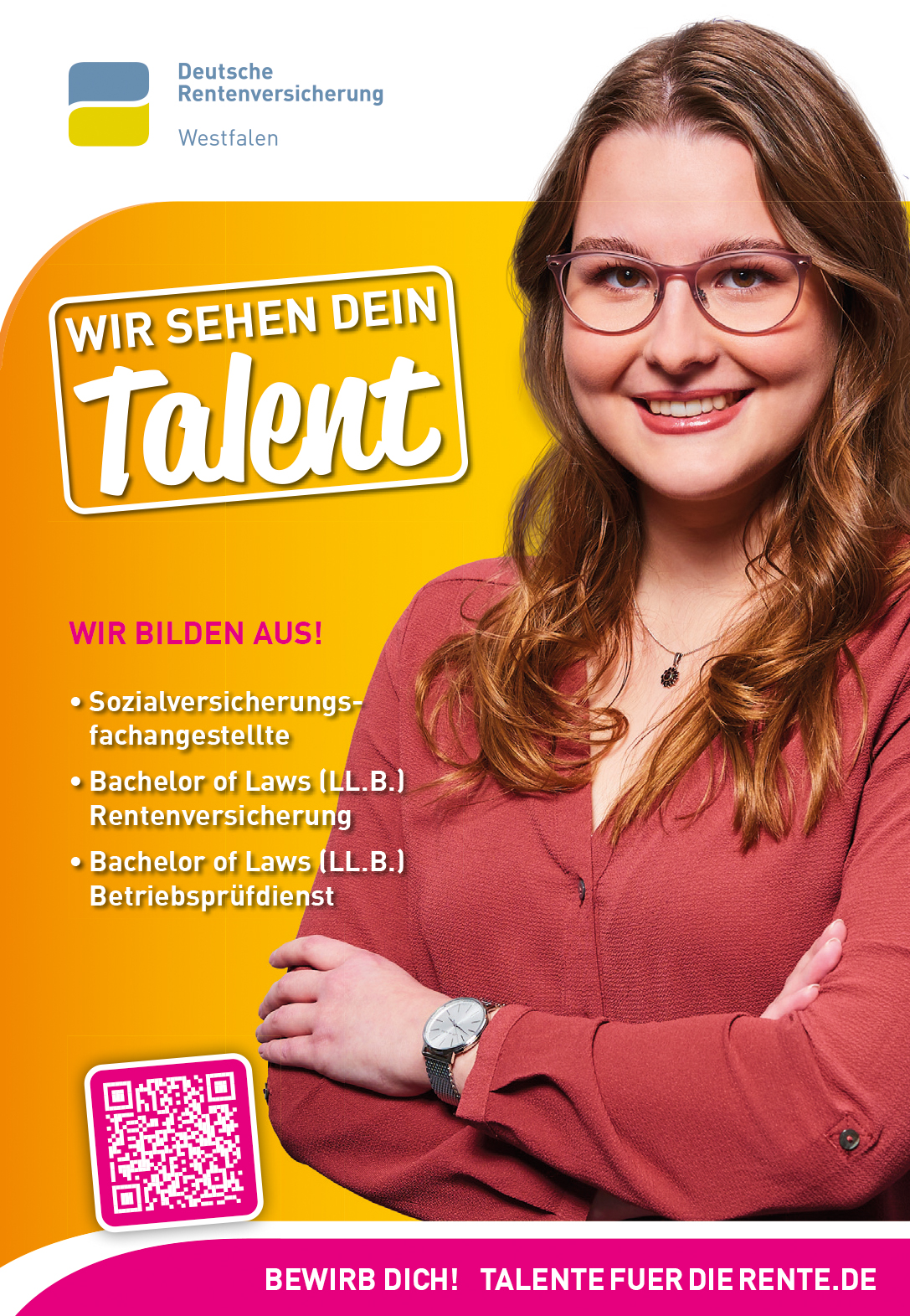 Die Deutsche Rentenversicherung Westfalen bildet Bachelor of Laws – Schwerpunkt Betriebsprüfdienst (m/w/d) aus. Ideal für Leute, die nicht nur studieren, sondern auch noch praxisnah ausgebildet werden wollen.